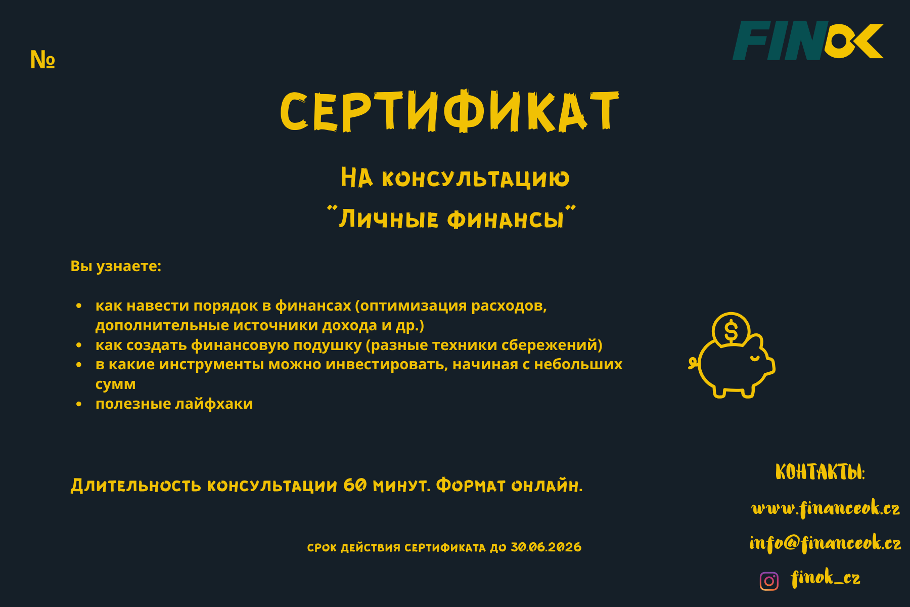Подарочный сертификат на консультацию "Личные финансы".